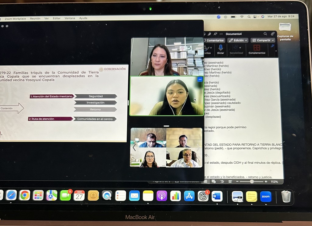 Hoy se llevó a cabo una reunión de trabajo convocada por la Comisión Interamericana de Derechos Humanos (CIDH), en la que participaron representantes del gobierno mexicano y una representación de las 144 familias triquis desplazadas de Tierra Blanca Copala, beneficiarias de la MC 279-22.